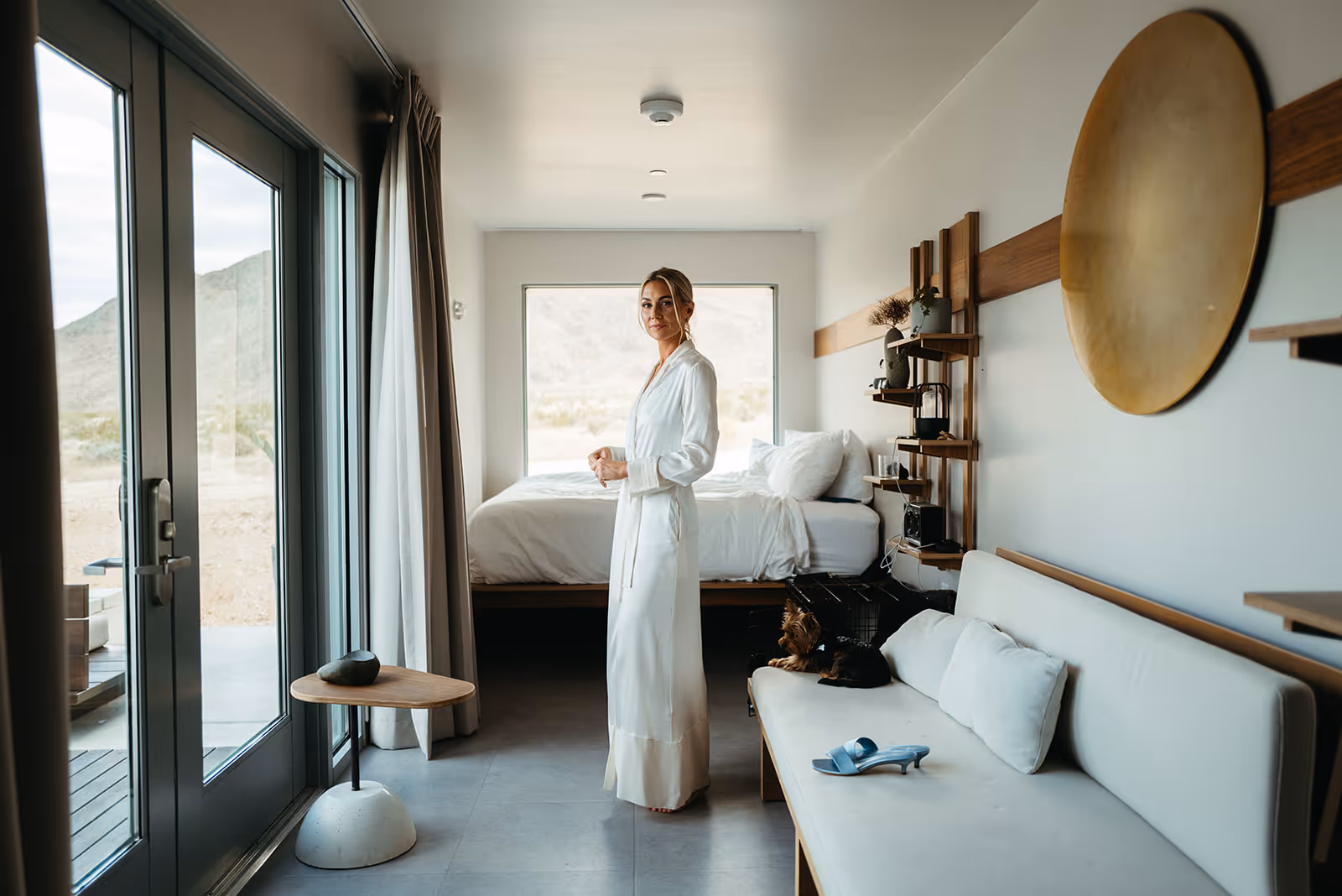 Each room opens directly outdoors, with quiet, design-forward interiors for rest between gatherings.